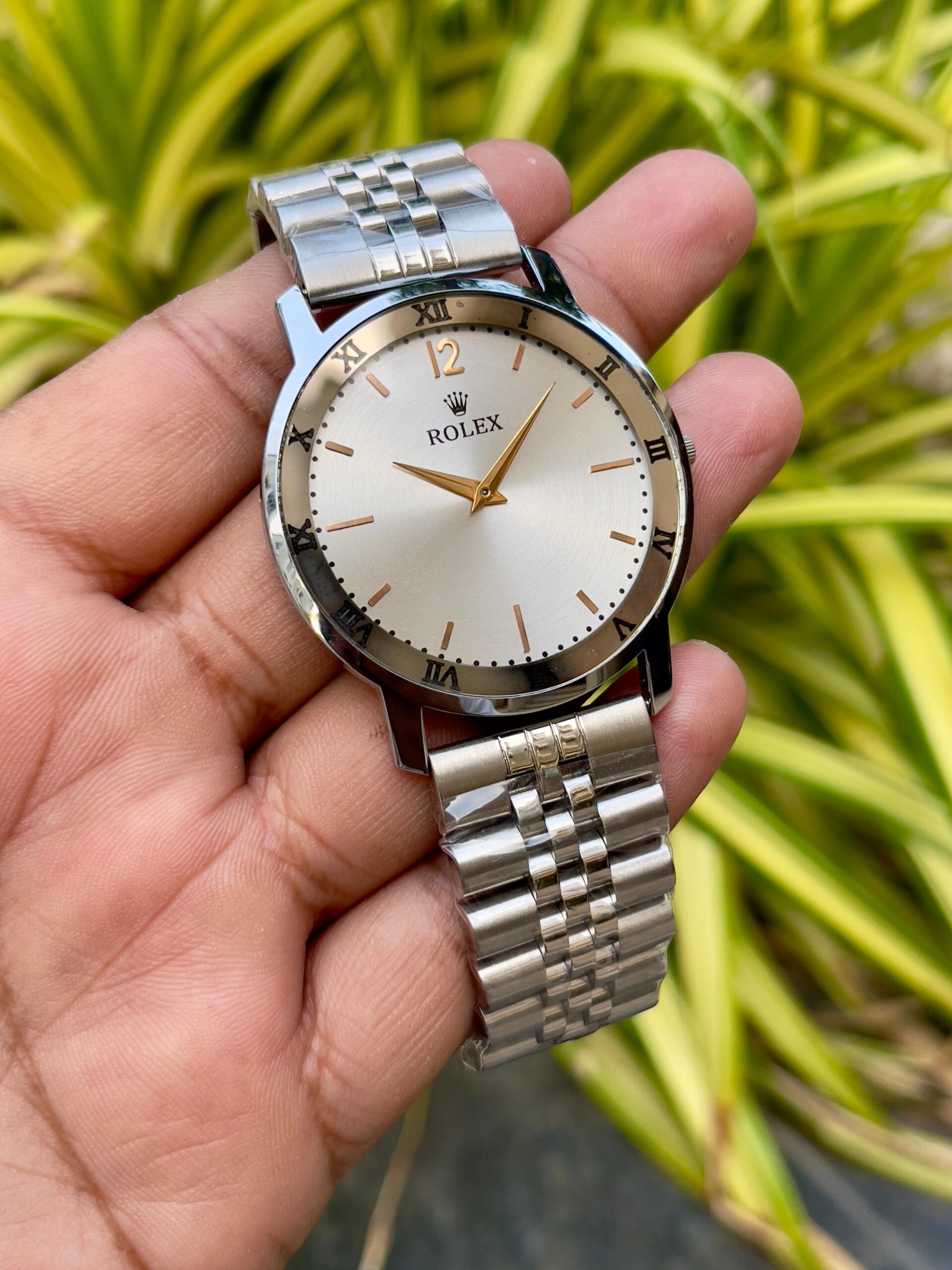 *This Rolex watch exudes timeless elegance with its sleek silver dial and classic Roman numeral markers. The finely crafted bracelet adds a touch of sophistication, making it a stunning accessory for any occasion.*
